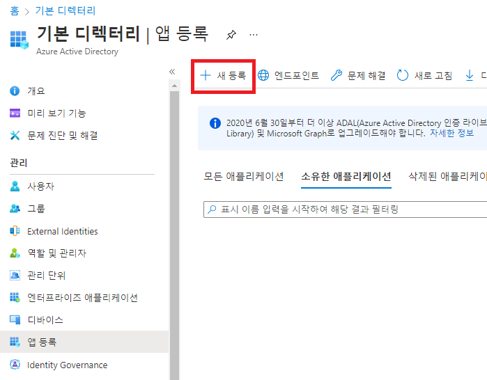 3\. 앱 등록을 선택합니다.&#x20;