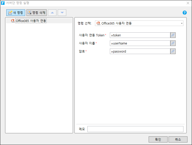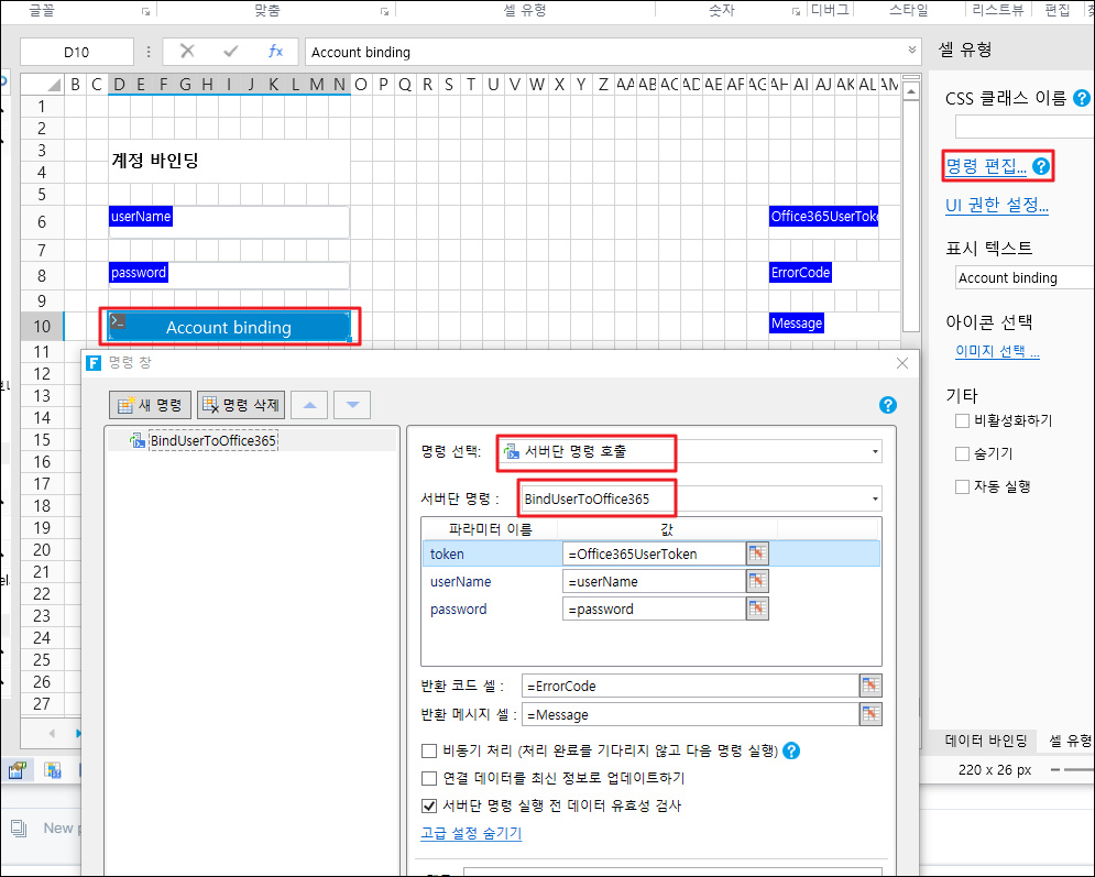 사용자를 Office 365 서버에 바인딩 명령 호출