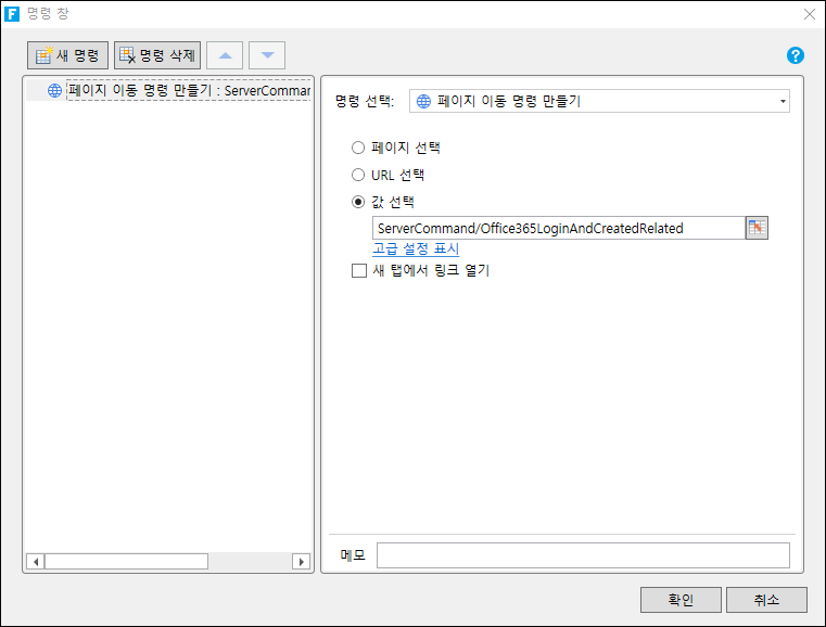 - 명령 선택 : 페이지 이동 명령 만들기